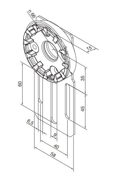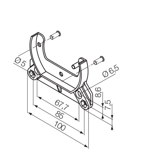 Supporto compatto in plastica con 2 fori per dado M6 e 2 sedi viti testa cilindrica M6.
