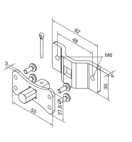 Perno quadro 10 mm + staffa a sella, con interasse 48 mm (per motori con finecorsa programmati in modalità manuale)