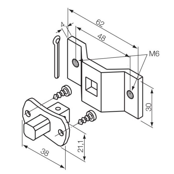 Perno quadro 10 mm + staffa, con fori a interasse 44 mm (max 30 Nm)
