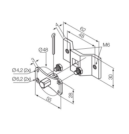 Perno quadro 10 mm + staffa, con fori a interasse 48 mm (max 30 Nm)