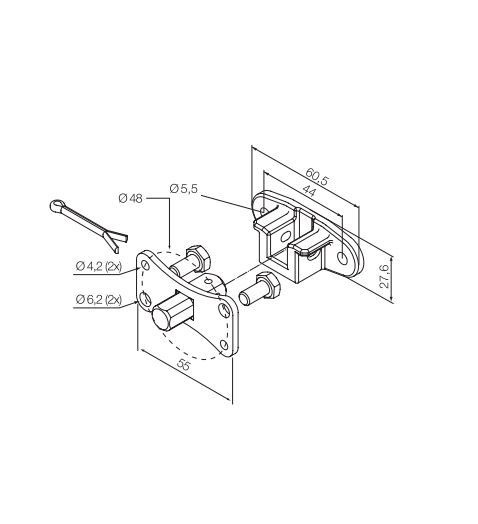 Perno quadro 10 mm + staffa a sella, con interasse 48 mm (per motori con finecorsa programmati in modalità manuale)