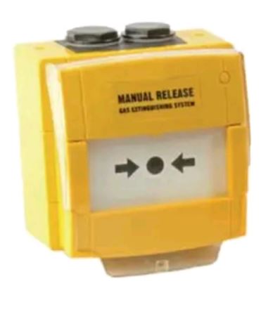 Inim – Pulsante manuale di alllarme per sistemi di spegnimento, colore GIALLO (SCARICA MANUALE). Certificazione EN12094-3. Uso interno.