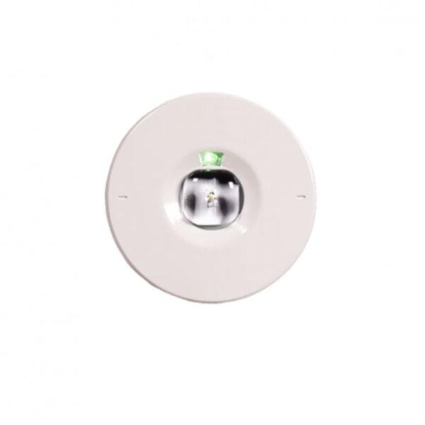 Faretto di illuminazione di emergenza Serie GEMMA tipo A. Installazione a soffitto luce simmetrica. MED. FL (SE) 150 (lm). Batteria LiFePO4 3,2V@1,5Ah. Durata 3h. Non permanente (SE). IP20. 150lm.
