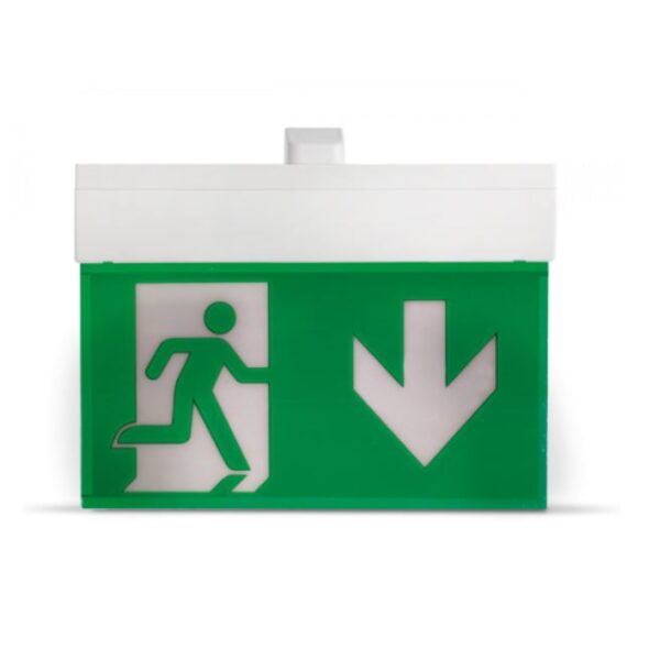 Lampada di segnalazione di sicurezza per l’esodo (pannello di segnalazione PMMA escluso), visibilità fino a 30m serie HP330 con autotest. Durata 1h. Batteria LiFePO4 3,2V@1,5Ah. Permanente (SA). IP40.