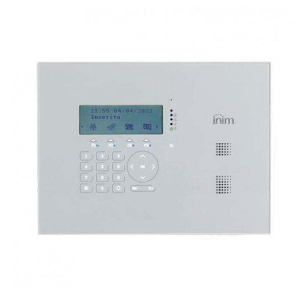Inim SOL-30G – Centrale wireless bidirezionale (868 Mhz) per la gestione di massimo 30 dispositivi wireless.Versione con dsiplay grafico LCD e tastiera a sfioramento e led di segnalazione. Equipaggiata con lettore di prossimità e sirena interna. Gestione di 5 areee. Gestione di 50 codici utente e 100 chiavi. 2 terminali probrammabili, 1 relè, 1 uscita AUX programmabile. Terminale I-BUS per la connessione di un ricetrasmettitore supplementare e/o lettore di prossimità. Alimentatore 2A. Batteria di backup al NiMH 7,2V@2,2Ah. Possibilità di gestire (con moduli opzionali) comunicazioni su PSTN, 3G, LAN e WiFI. Comunicatore vocale con modulo opzionale Smartlogos30M. Programmazione semplificata tramite App InimTech Security