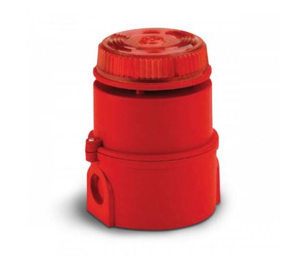 Inim – Segnalatore ottico convenzionale con LED ad alta potenza, base profonda. IP66. Contenitore termoplastico rosso.