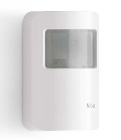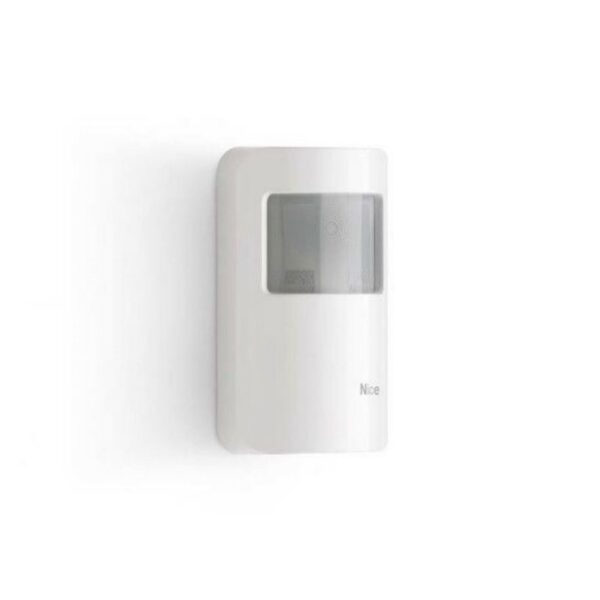 Rivelatore di transito a doppio infrarosso, portata 8m 5°, con lente a tenda verticale e funzione antiaccecamento, radio bidirezionale Dual Band. Colore bianco