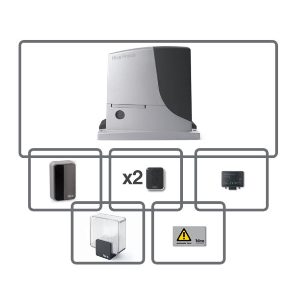 Kit per l’automazione di un cancello scorrevole fino a 400 kg. Il KIT comprende: – 1 Motoriduttore elettromeccanico irreversibile, 24