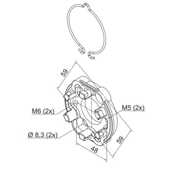 Compact support aluminum with spring ERA M SH with holes 48 mm (M6) and 4 holes 60 mm (M8 e 8.3)