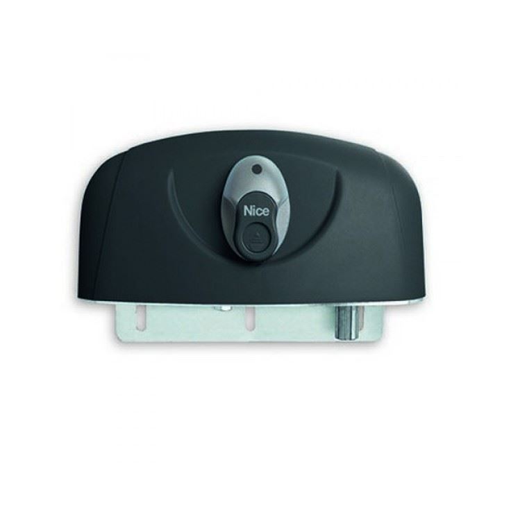 Irreversibile, 24 Vdc, con centrale e ricevitore incorporati, luce di cortesia a LED e finecorsa meccanico.