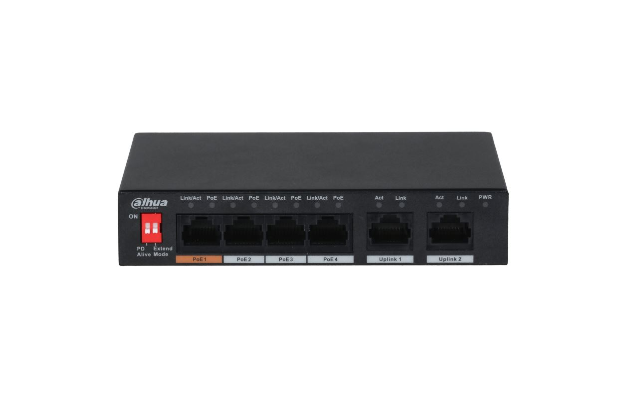 Switch unmanaged 4 porte PoE + 2 porte uplink,