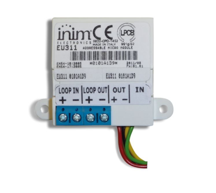 ULTERIORI CARATTERISTICHE: Il micromodulo EU311 grazie alle dimensioni ridotte può essere alloggiato direttamente all’interno del dispositivo da controllare (Pulsante di allarme, sirena, rivelatore lineare ecc.), si collega al loop e dispone di un ingresso supervisionato (in grado