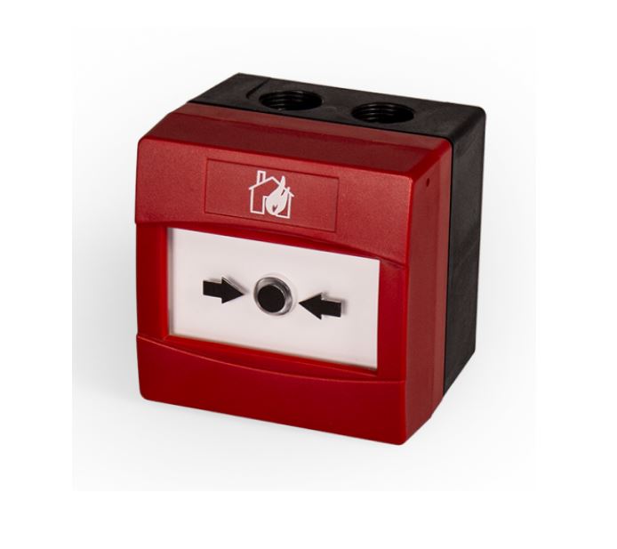 Pulsante manuale di allarme ripristinabile completo di modulo analogico indirizzato. Contenitore di colore rosso. Per uso esterno (IP67). 240 indirizzi. Completo di isolatore di loop. Certificazione CPR EN54pt11.