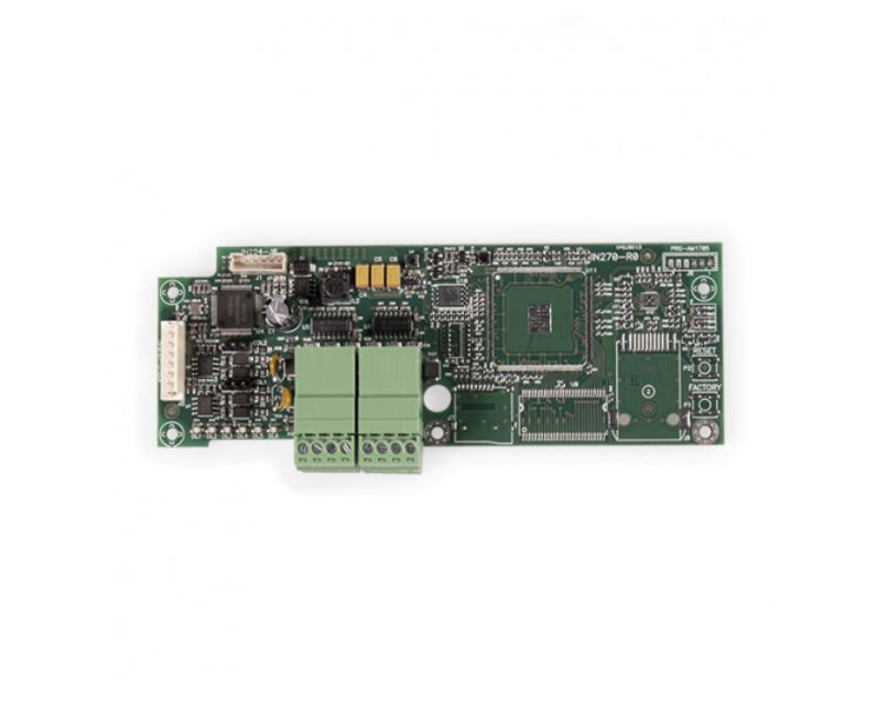 Modulo interno con 2 porte seriali (RS232/RS485) per servizi comunicazione avanzati; ESPA 4.4.4. EVAC. Solo per centrali PREVIDIA COMPACT