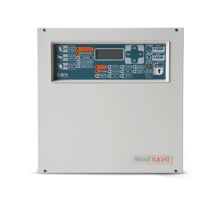Centrale rivelazione incendio analogica indirizzata serie Smartlight. 1 LOOP non espandibile e non connettibile in rete max 64 sensori e 16 zone. Alimentatore Switching da 1,4Ah. Max 2 batterie 12Vcc@7Ah. Certificazione CPR EN54pt2-4