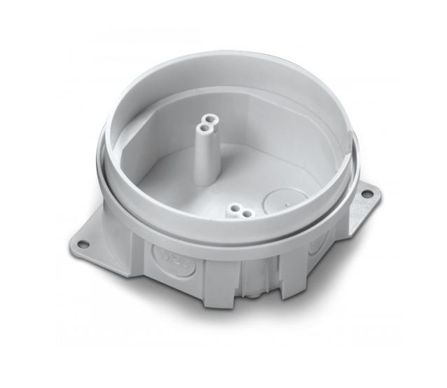 Inim – Base di fissaggio in alluminio per raccordo con tubature a vista PG16. Compatibile con le basi Apollo 45681-210, 45681-215, 45681-211.