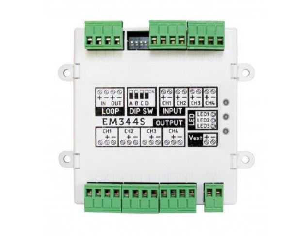 Modulo analogico indirizzato dotato di 4 ingressi supervisionati, di cui 2 programmabili come ingresso, ingresso per linea convenzionale o 4-20mA, e di 4 uscite supervisionate. Occupa 4 indirizzi su loop ENEA. Completo di isolatore di loop. Certificazione CPR EN54pt17/pt18.