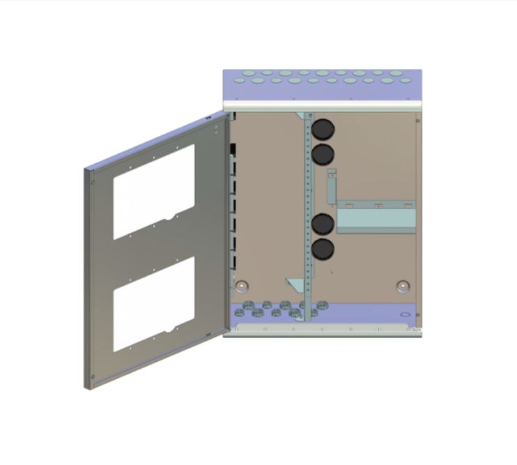 Armadio aggiuntivo completo di porta, barra CAN DRIVE per la connessione dei moduli interni, e mensole per batterie. Solo per centrali PREVIDIA MAX