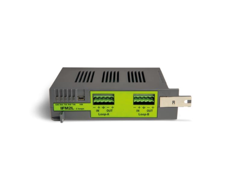 ULTERIORI CARATTERISTICHE: Ciascun loop è in grado di gestire fino a 240 dispositivi. Il modulo contiene un alimentatore switching step-up per ogni Loop in grado di mantenere la tensione di esercizio (in condizioni di allarme o di stand-by) ai valori impostati. Ogni centrale gestisce un massimo di 8 moduli IFM2L.