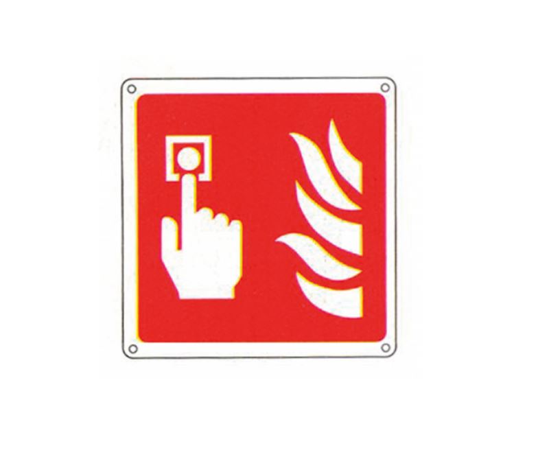 Inim – Cartello segnalatore presenza pulsante allarme alluminio, 160x160mm.