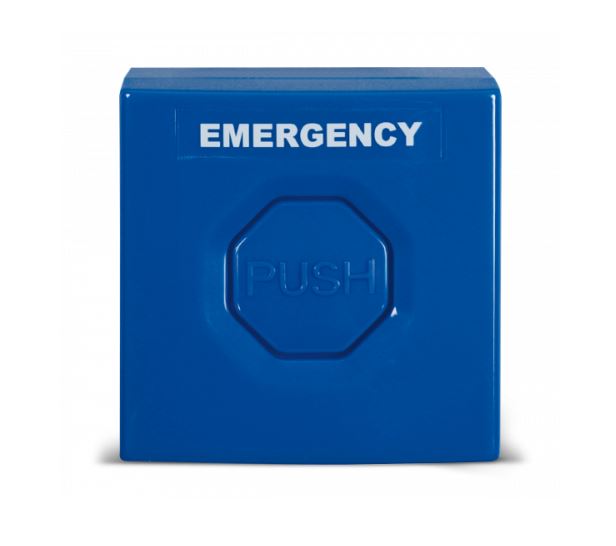 Inim – Pulsante senza ritenuta blu.