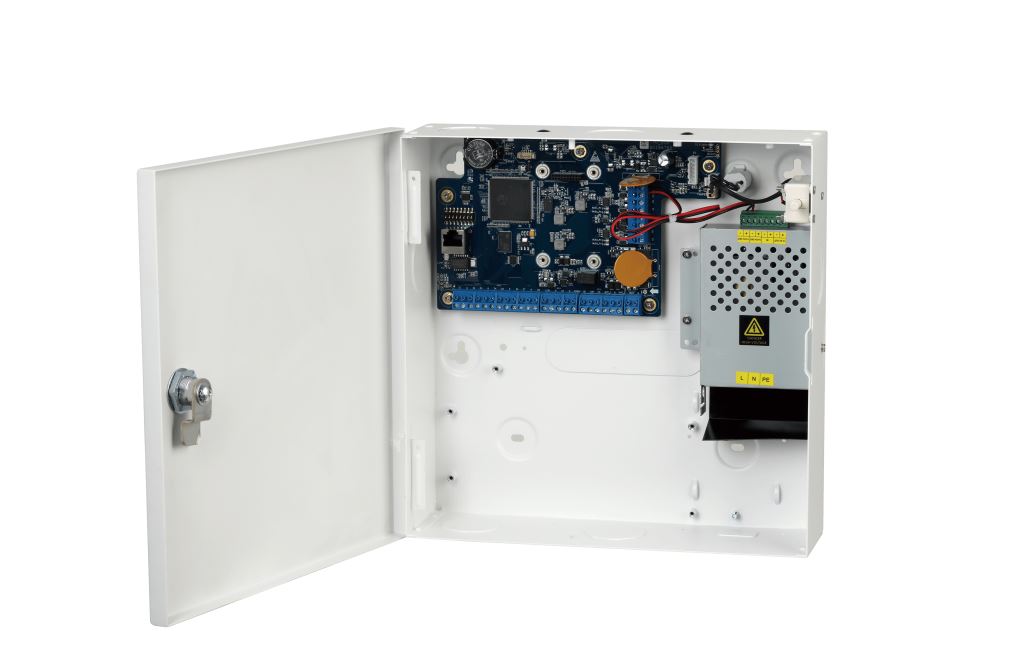 1 porta LAN 10/100 Mbps e 2 RS485 per collegamento moduli e tastiere.