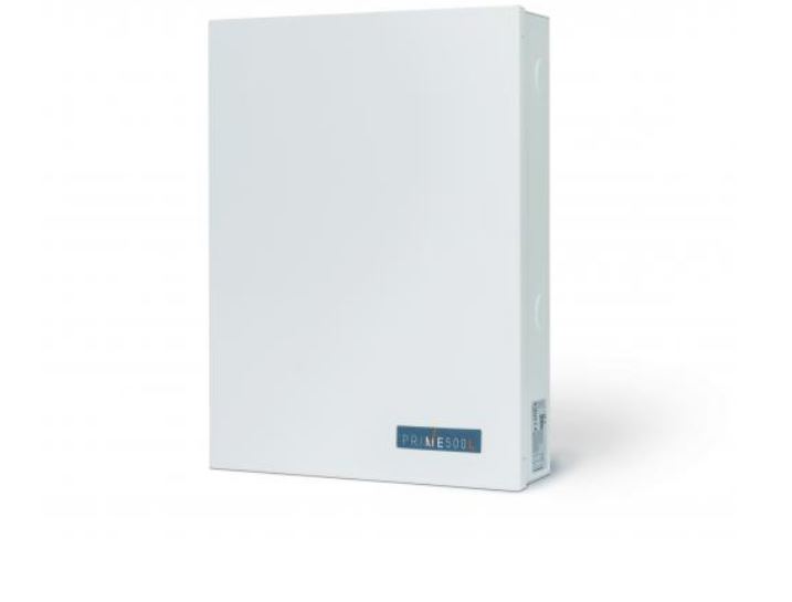 Inim Prime500L – Centrale per la gestione di un massimo di 500 terminali. Scheda principale con 10 terminali programmabili, 1 relè e 2 O.C. programmabili; comunicatore digitale e comunicatore vocale (opzione SmartLogos30). 30 aree gestibili. Programmazione tramite USB o LAN. Gestione massimo di 500 codici utente e 500 TAG di prossimità. Memoria ciclica fino a 4000 eventi. Box metallico per alloggiamento max 1 batterie 12Vcc@17Ah. Alimentatore Switching (160W) 13,8V@5A 1,2A per ricarica batteria. Conforme EN50131-3/3 EN50131-6/3 IMQ.