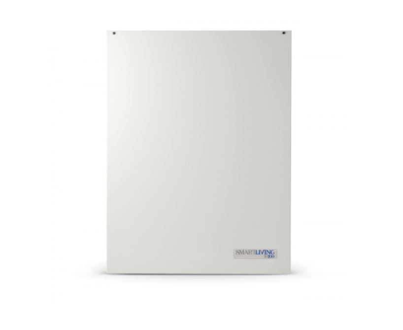 Inim SmartLiving10100L – Centrale per la gestione di un massimo di 100 terminali. Scheda principale con 10 terminali programmabili, 1 relè e 2 O.C. programmabili; comunicatore digitale, modem di programmazione e comunicatore vocale (opzione SmartLogos30). 15 aree gestibili. Gestione massimo di 100 codici e 150 TAG di prossimità. Memoria ciclica fino a 1000 eventi. Box metallico per alloggiamento max 2 batterie 12Vcc@17Ah. Alimentatore 5Ah. Certificazione EN50131-3/3 EN50131-6/2 IMQ.