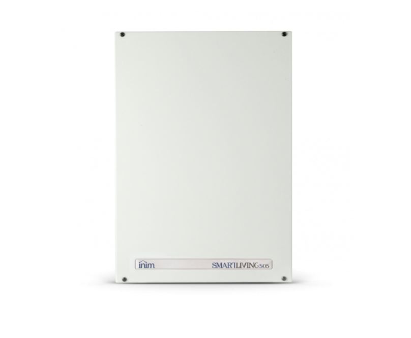 Inim Smartliving505 – Centrale per la gestione di un massimo di 5 terminali. Scheda principale con 5 terminali di ingresso, 1 relè e 2 O.C. programmabili; comunicatore digitale, modem di programmazione e comunicatore vocale (opzione SmartLogos30). 5 aree gestibili. Gestione massimo di 30 codici utente e 50 TAG di prossimità. Memoria ciclica fino a 500 eventi. Box metallico per alloggiamento max 1 batteria 12Vcc@7Ah. Alimentatore 1,2Ah. Certificazione EN50131-3/3 EN50131-6/2 IMQ.
