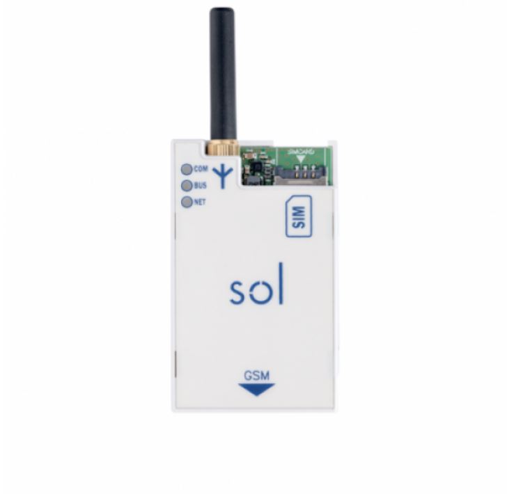 Inim Sol-3G – Modulo interno GSM/GPRS/3G. Funzioni di comunicatore vocale e digitale su rete GSM/GPRS/3G. Invio SMS e telefonata per singolo evento. Risponditore e gestione comandi da DTMF. Gestione protocollo SIA-IP. Programmazione e controllo delle centrali SOL tramite CLOUD. Possibilità di inserimento a caldo.