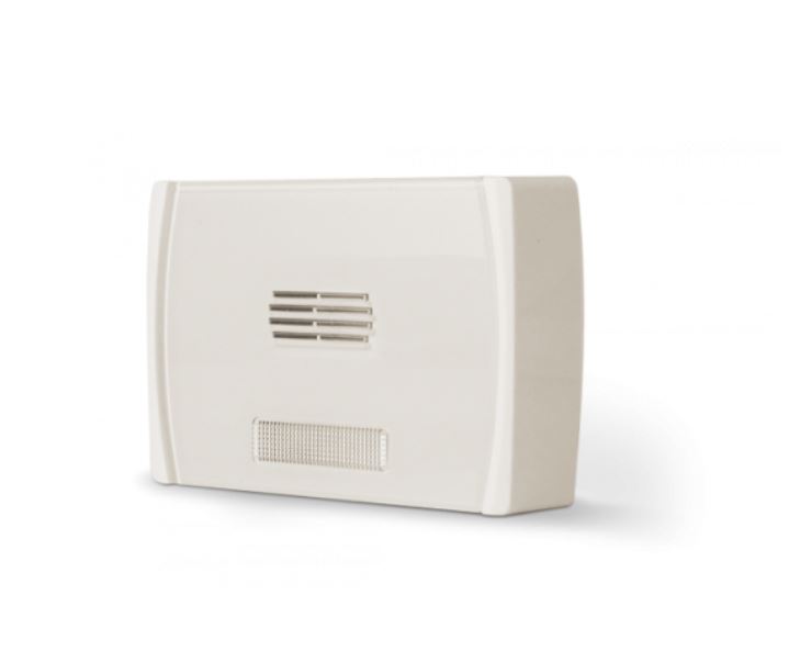 Segnalatore ottico/acustico piezo per interno 110dB(A)@1m, intensità luminosa 25Lux@1m. IP31. Contenitore termoplastico colore bianco.