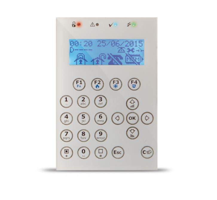 Inim Concept/GB – Tastiera con display grafico retroilluminato e tasti a sfioramento per la gestione dei sistemi SmartLiving, interfaccia utente ad icone, Colore Bianco.