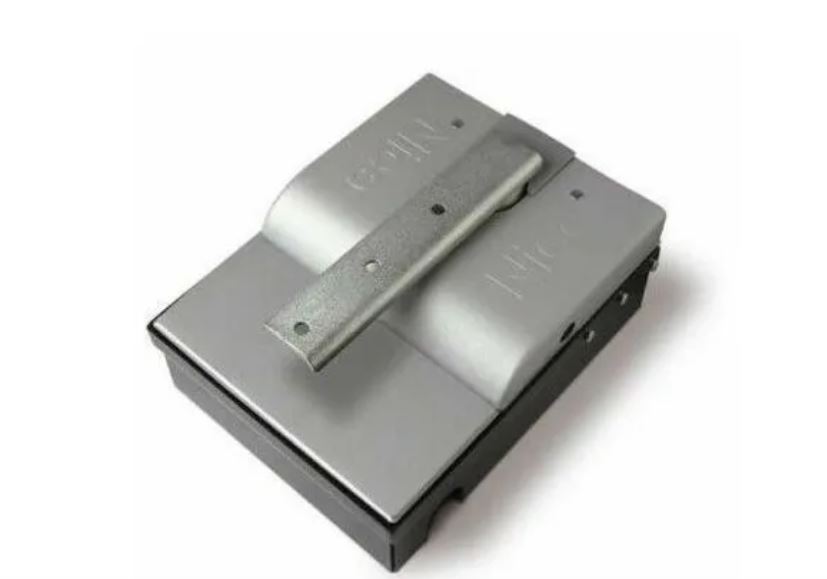 Cassa di fondazione in cataforesi per BM4000 e BM4024 con finecorsa meccanico in apertura. Completa di leva di attacco anta