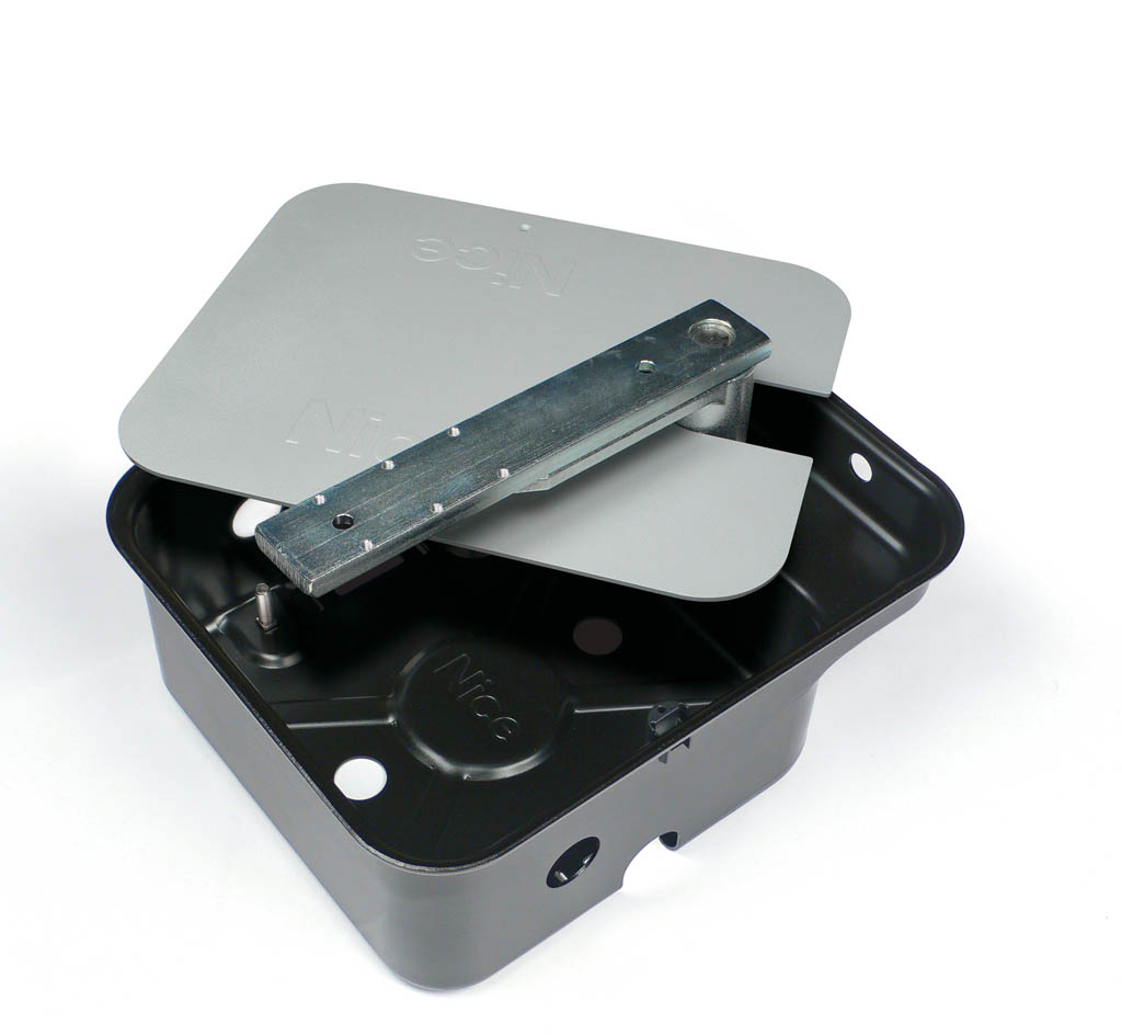 Cassa di fondazione imbutita, finitura in cataforesi, con fermo meccanico in apertura