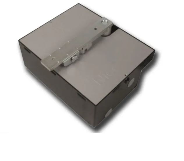 Cassa di fondazione inox per LFAB4000, LFAB4024, LFAB4024HS con finecorsa meccanico in apertura. Completa di leva di attacco anta