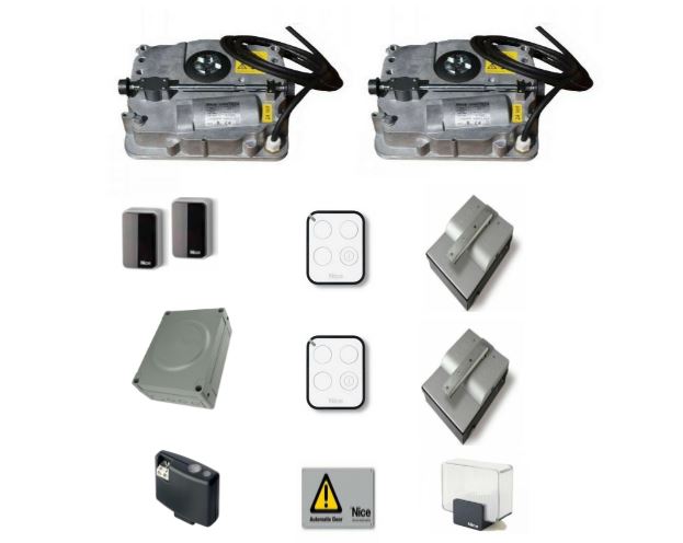 ULTERIORI CARATTERISTICHE: Contiene: 2 Motoriduttori SFAB2124, 2 Casse di fondazione SFABBOX, 2 trasmettitori radio a 4 canali 433.92 MH (MYGO4) , 1 Centrale di comando con ricevitore radio bidirezionale ad innesto OXIBD