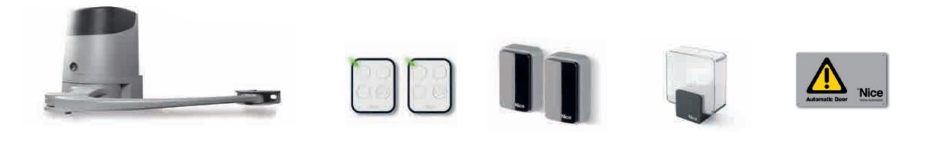 ULTERIORI CARATTERISTICHE: Contiene: 2 Motoriduttori elettromeccanici a montaggio esterno: 1 pz. HO7124 (con centrale e ricevitore radio bidirezionale ad innesto OXIBD