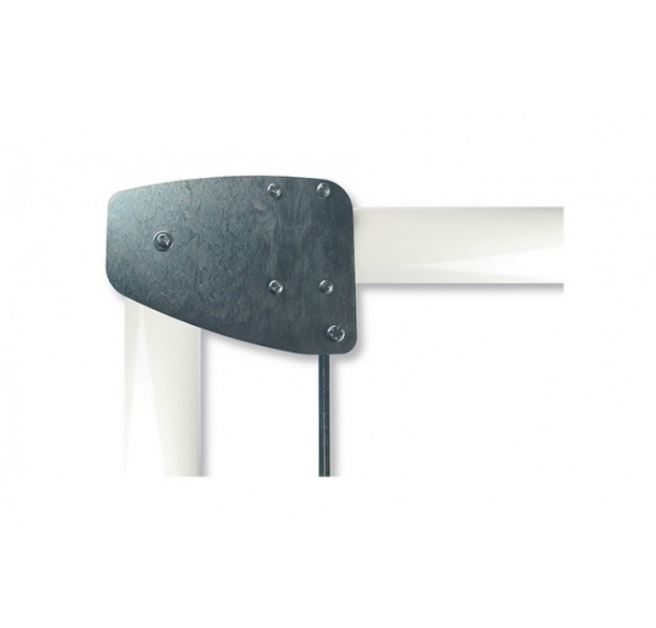 Irreversibile 230 Vac; motore a 24Vdc con piasstra di fondazione, per aste fino a 9m, con contenitore in acciaio con trattamento protettivo di cataforesi, verniciata di colore bianco (Ral 9010).