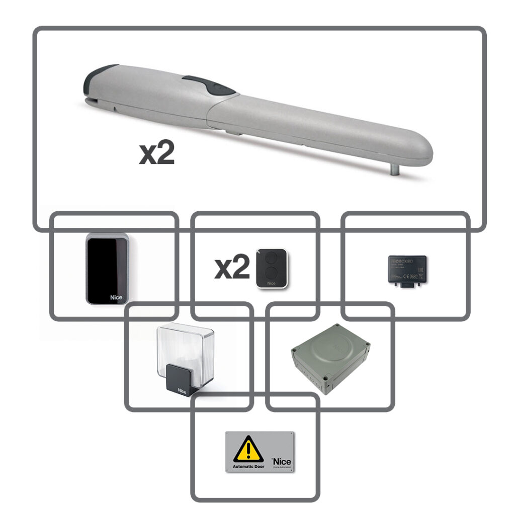 Kit bidirezionale per cancelli a battente con ante fino a 2 m, 24 Vdc, montaggio esterno