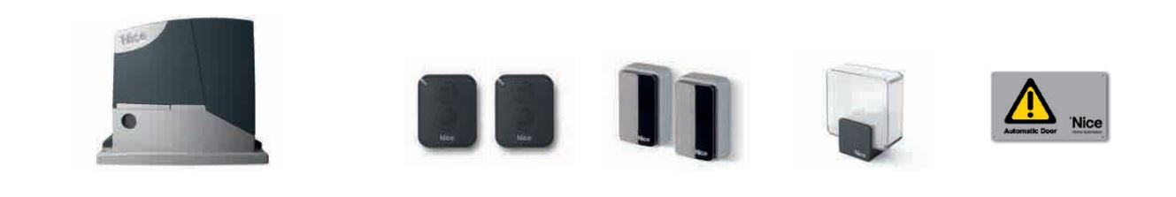 Kit per l’automazione di cancelli scorrevoli fino a 400 kg e lunghezza dell’anta fino a 6 m, 24 Vdc, centrale integrata