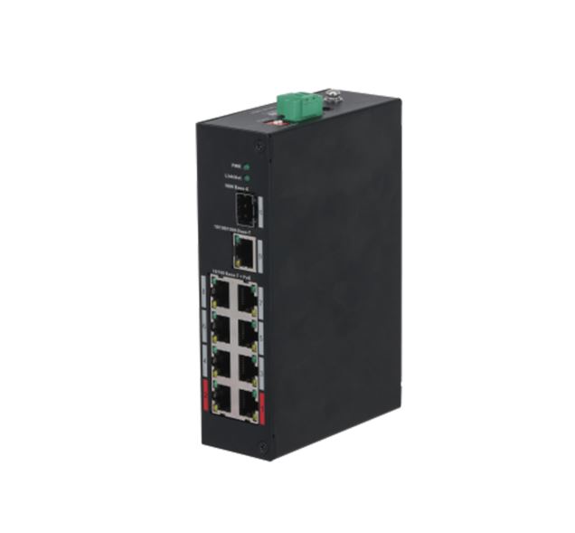 Dahua – Switch Hardened Unmanaged Con 10 Porte (8 PoE 10/100 Mbps <96 W + 2 Gigabit Uplink), Capacità Switching 7.6 Gbps, Rate Inoltro Pacchetti 4.17 Mbps, Red Port Bt 90 W, PoE Watchdog, Trasmissione PoE Fino A 250 M, 48-57 Vdc