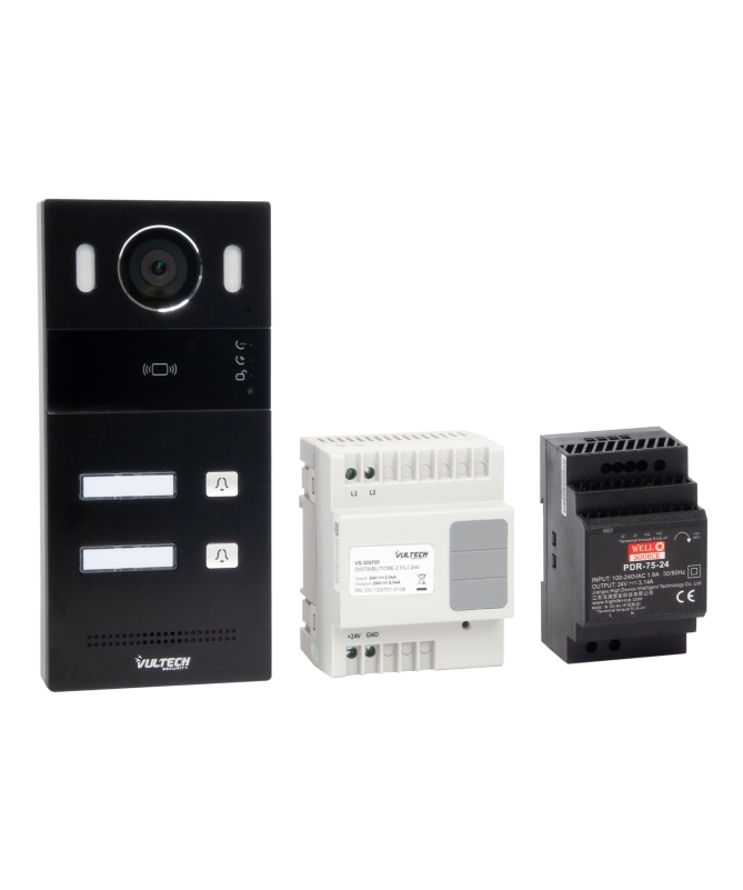 Kit Villa Bifamiliare VS-KW-2IP2S 2 fili by ip con postazione da esterno 2 tasti + alimentatore 24V in DIN + Distributore in DIN